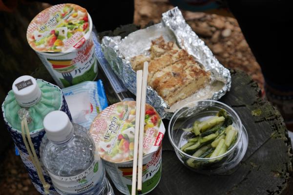 とにかく無事合流できたのでお参りやお土産などをすませ、鳥居を出た先にある休憩ポイントで念願のカップ麺をすすった。袋ラーメン派のわたしはこころの中で裏切りを感じながらも、これはこれで用意が楽でいいなぁと思った。