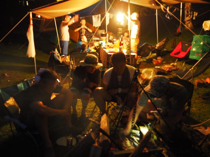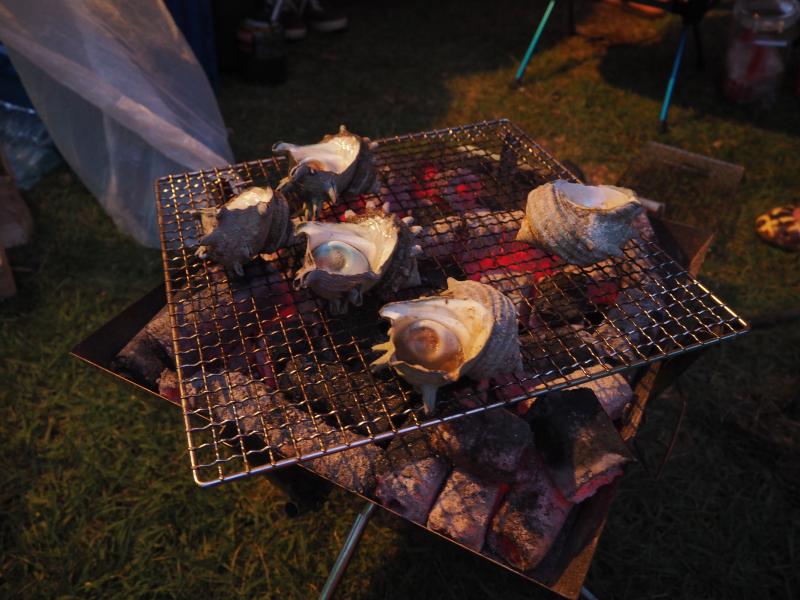 夜は再びBBQで、先輩が用意してくれた肉や魚介、カレーを堪能し明日への活力へ。
