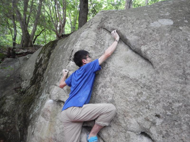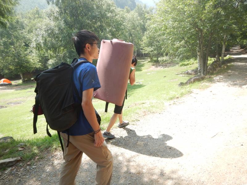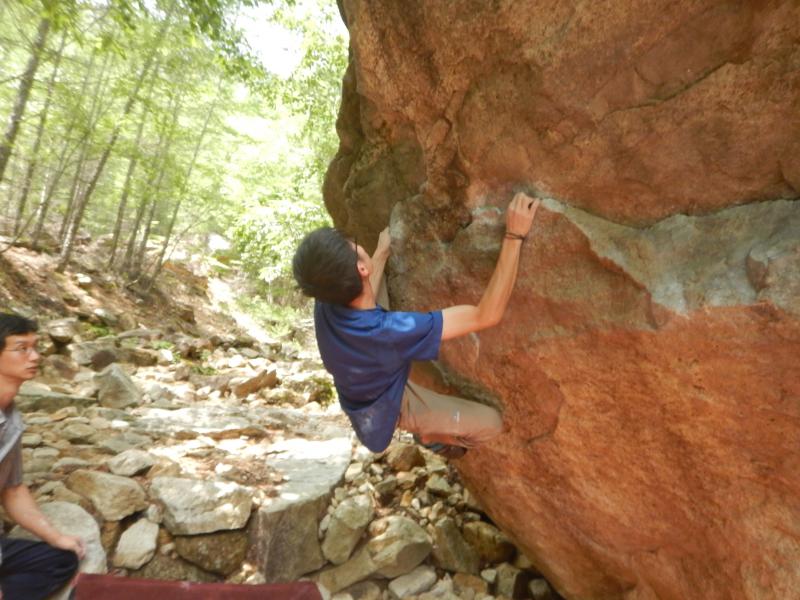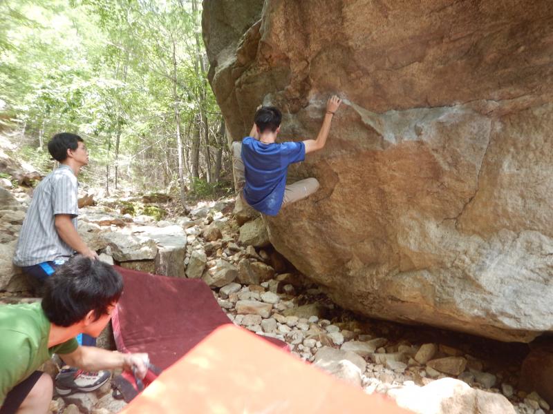 次の日は登れるのかなーと思いながら、迎えた次の日は、乾きの早いビクターに行きました。自分はランジ3級を、城戸くんはサブウェイ3級を中村さんはマントル5級をトライ!城戸くんはムーブがバラせていたらしく、あっという間にサブウェイを登っていました。中村さんは、初の外岩マントルだったそうで、いいところまで返すも返し切れずに今回の宿題になってしまった模様でした。