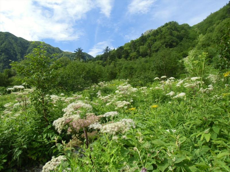 御池小屋からすぐの草すべりではきれいな花畑が!