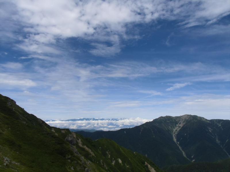 南側にはこれから向かう間ノ岳、農鳥