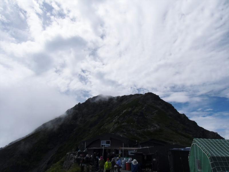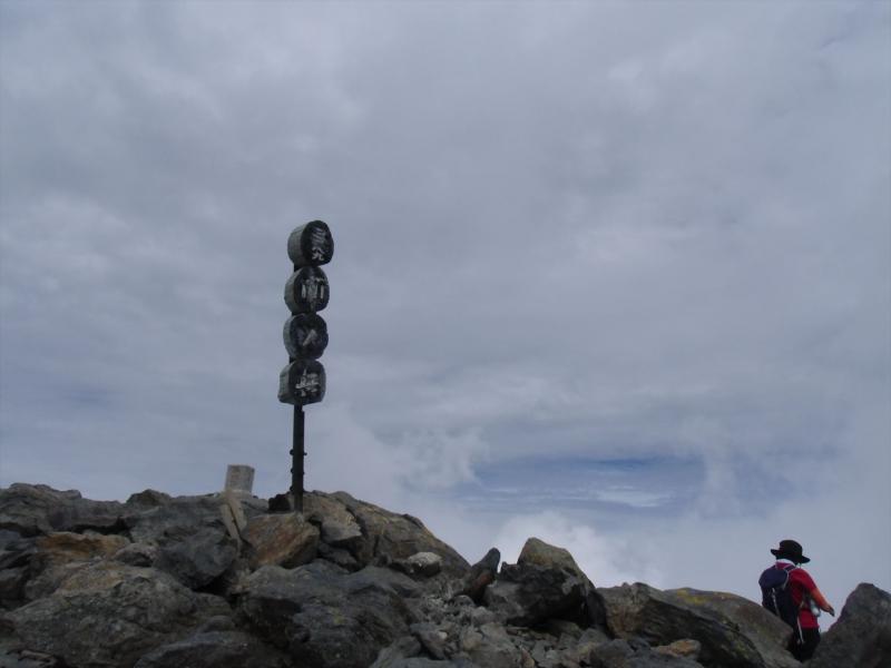 とにかく、なんとか中白根・間ノ岳まで来て、投げやりに写真を撮り、なんとかかんとか農鳥小屋へ到着しました。