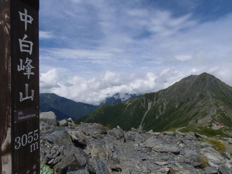- 19日6:25広河原(100分)白根御池小屋(120分)北岳肩の小屋(35分)北岳山頂(40分)北岳山荘(35分)中白根山(70分)間ノ岳(55分)農鳥小屋テント場14:55