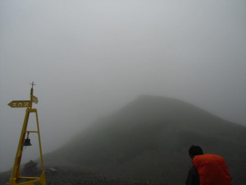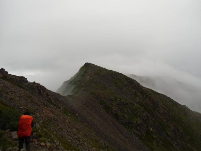 西農鳥岳は割とすぐでしたが、農鳥岳は突き出た岩の偽ピークを巻きながら、雨で滑る岩を乗り越えながら、てくてく登って下りて。