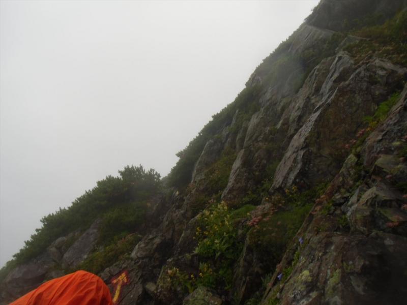 切り立った岩腹をそろそろ下ったりしてるうちに大門沢下降点へ。