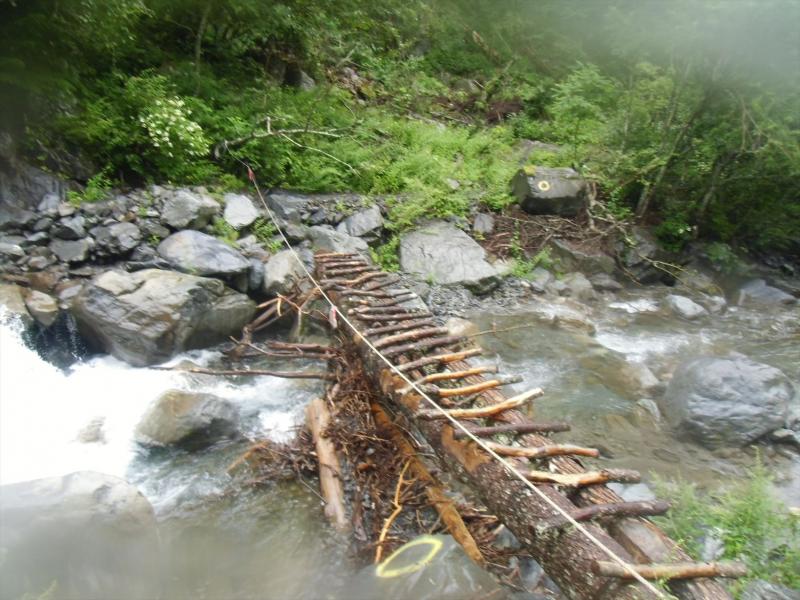 下降点から奈良田までは雨天時水量が増すと、特に滑りやすい。