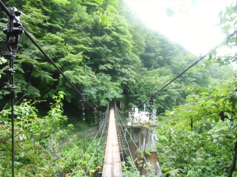 ぼろぼろのスリリングな木橋をいくつか渡ると奈良田駐車場にゴールです。