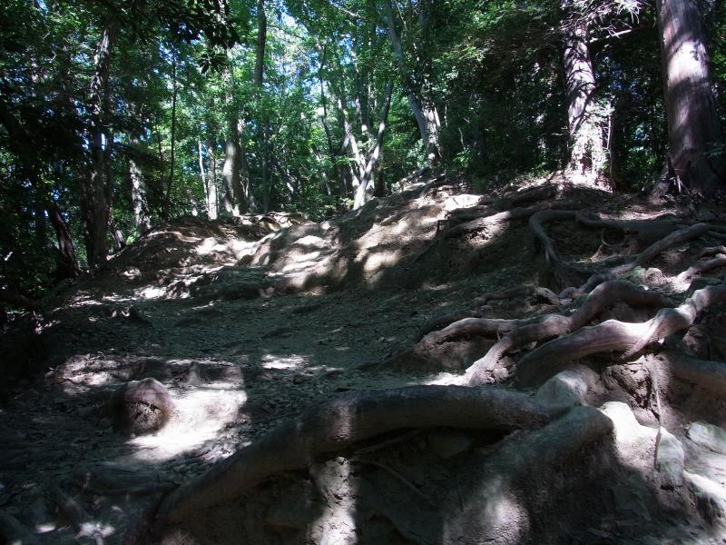 - 稲荷山コースで登り、4号路、2号路、1号路経由で下山。登りは木の根がゴツゴツして不安定な道もあります。下りの1号路は急なコンクリート道です。