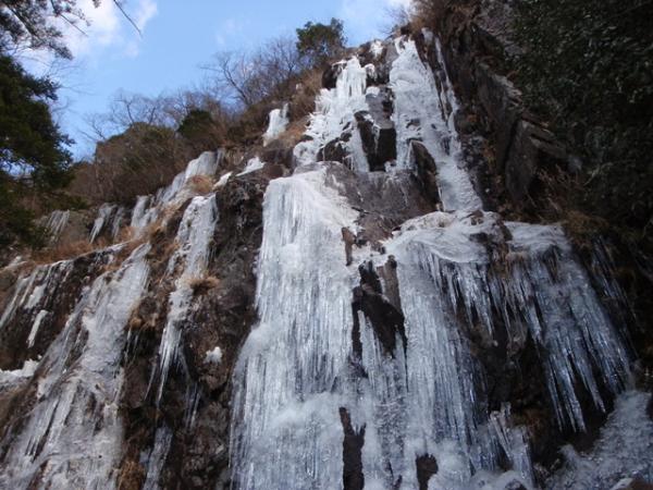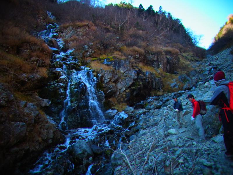 藪沢大滝を拝みに沢を進みます。凍っているかと思いきや、所々霜がある程度。