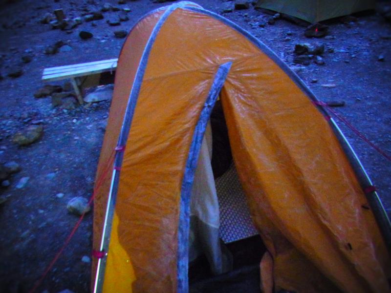 テントをよく見ると凍りついていました、、寒いわけだ。