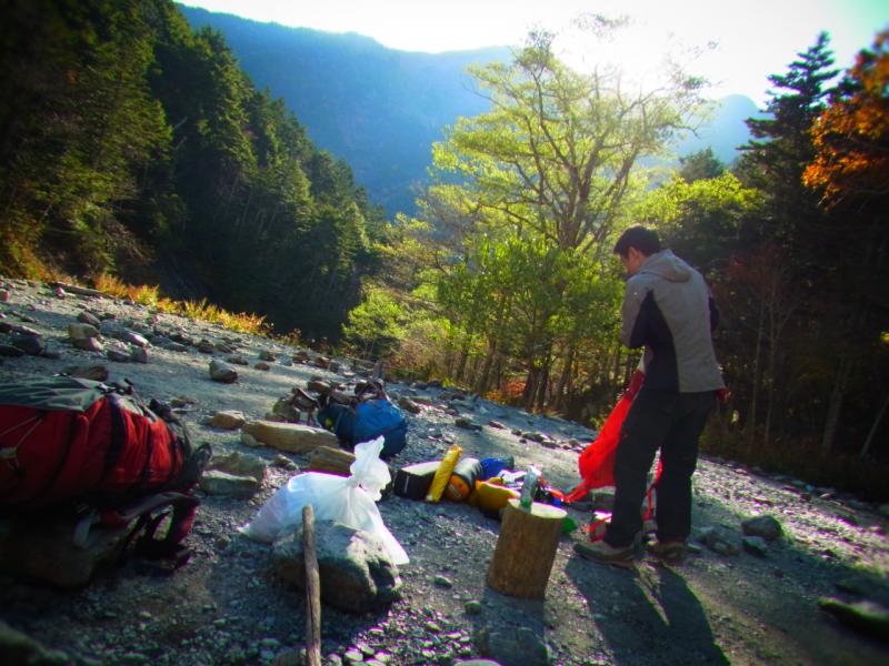 北沢峠 長衛小屋のテント場に本日の住居を組み立て荷物をデポし、いざ出発!
