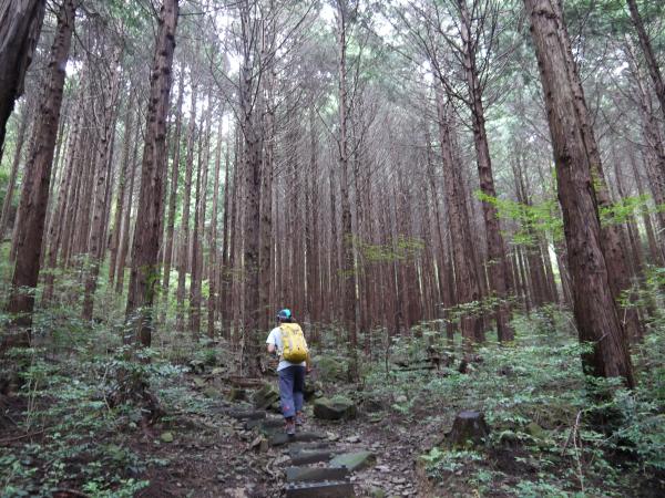 - 登りルートは初心者向き。雨の翌日でしたが陶の郷から稜線鞍部まで階段状に整備されておりこれがちょうど歩幅に合うので歩き易い。下山に選んだ高圧線鉄塔沿いの道はあまり利用されておらず荒れています、地図が読める方向きです。