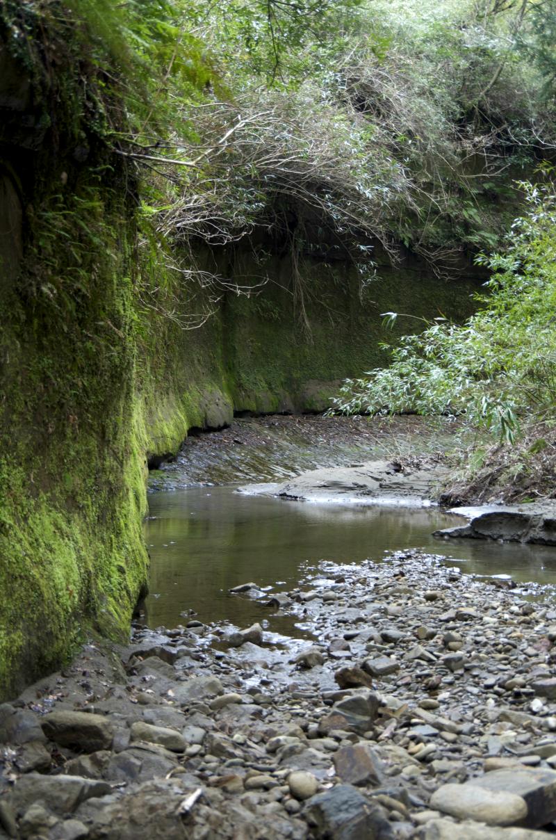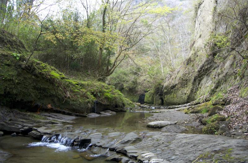 両側には川の浸食で出来た露頭が見られたり、層が剥がれギザギザになっている岩があったりと、なかなか面白い渓谷歩きでした。