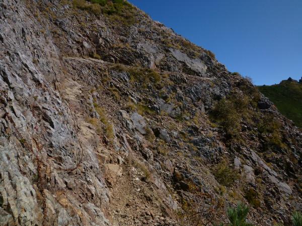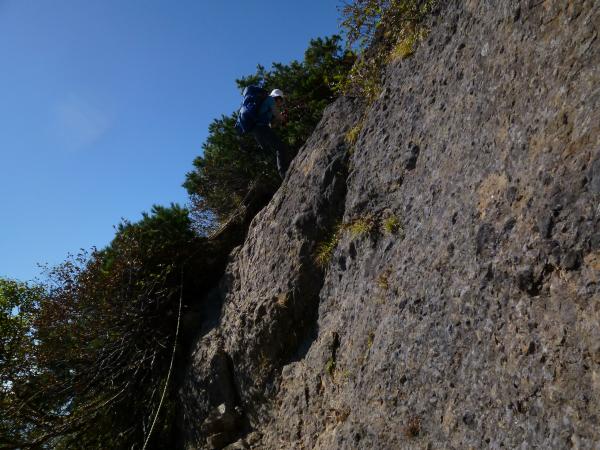 ストックは一旦たたみ、岩質も脆いので慎重に進みます。