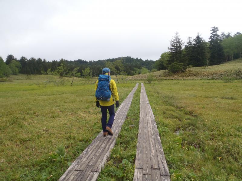 - 一ノ瀬(75分)三平峠(15分)三平下(25分)尾瀬沼ヒュッテ(20分)長英新道分岐(240分)