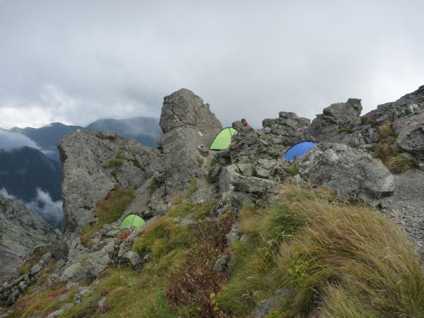 結局、ガスと時間の問題で北穂高で慕営。