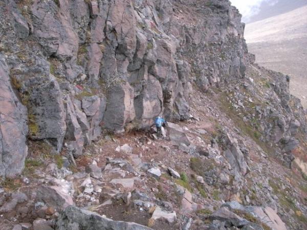 Jバンドの岩場を抜けて高原に降りたところで岩陰に隠れて昼食