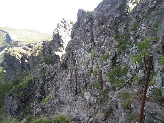行者小屋より上は急登で、階段・ハシゴ・クサリが連続します。