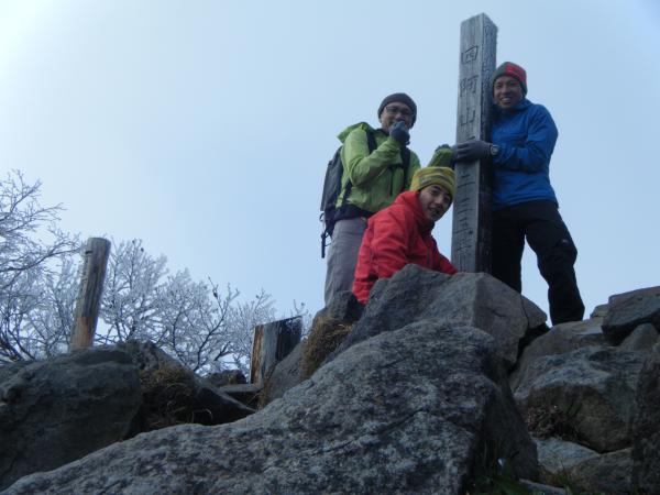 登頂すると南側はポカポカ陽気、景色もなんとか見られました。