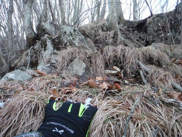 登山道のない急斜面を登る目も必須です。初心者のみでの入山は絶対にしないでください。