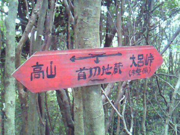 高山登山道(12:30)→高山登山道→奥山林道(14:34)→首切り地蔵→首切り茶屋(15:30)