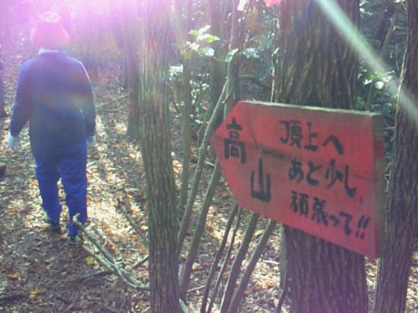- 地蔵の森公園P(10:00)→高山林道→高山林道登山口(10:28)→けやき峠(11:04)→高山頂上(12:30)→