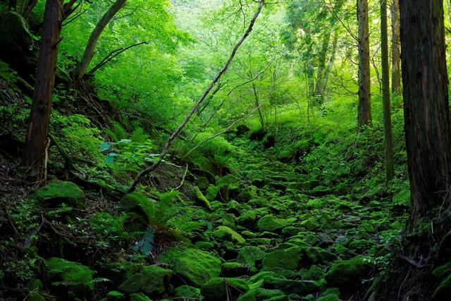 往路の石段でできた登りは苔むしており滑りやすいです。