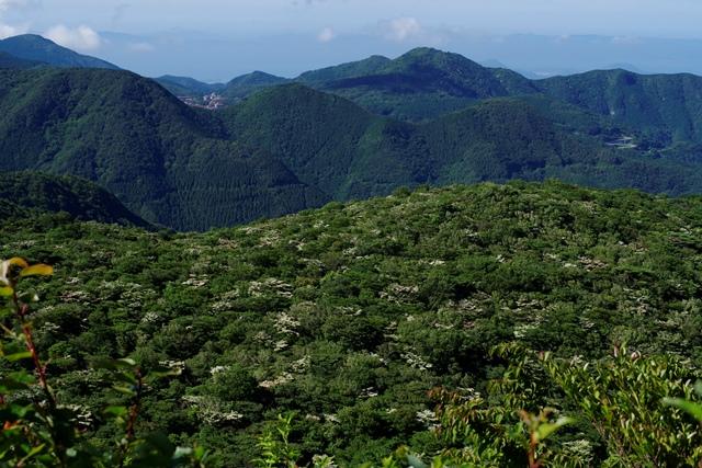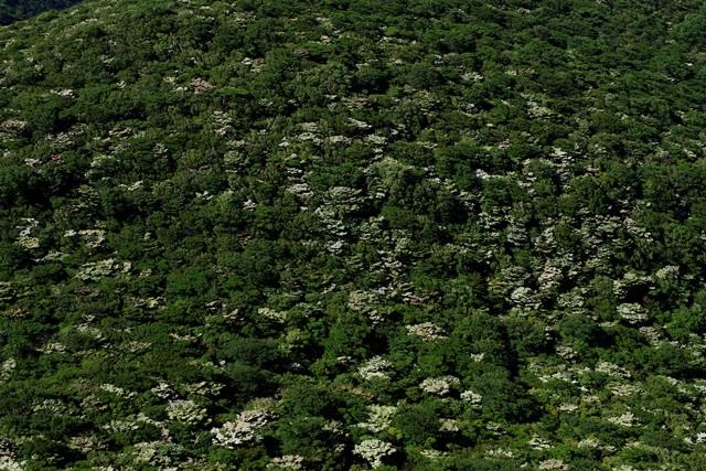 6月半ばから7月にかけて山頂付近から下を眺めるとヤマボウシが満開を迎え真っ白に染まります。