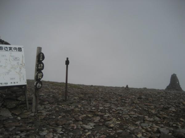 硫黄岳山頂の火口には近づかないように、ケルンを頼りに歩いて下さい。