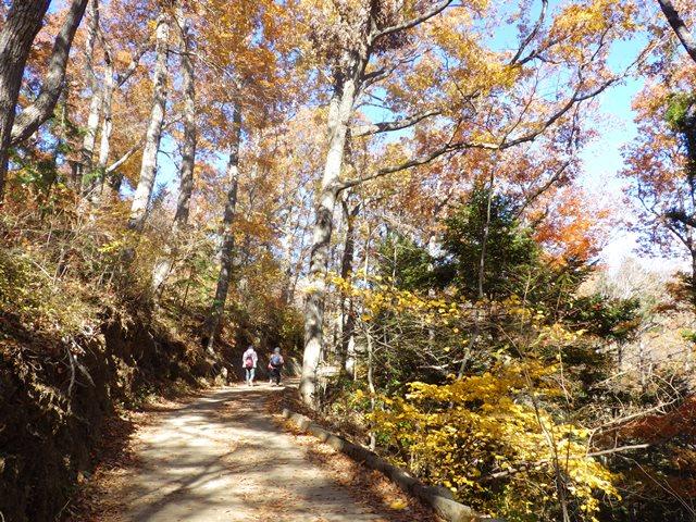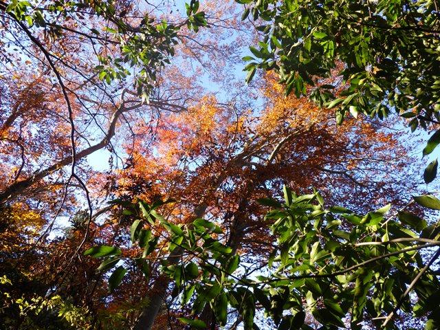 段々と森も明るくなり紅葉の名残を楽しみながら登って行くと