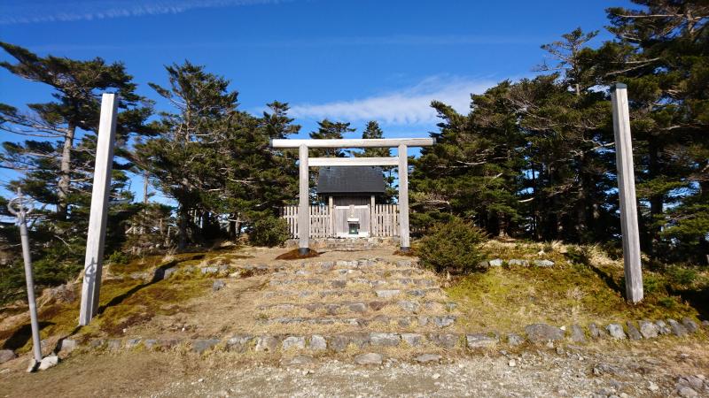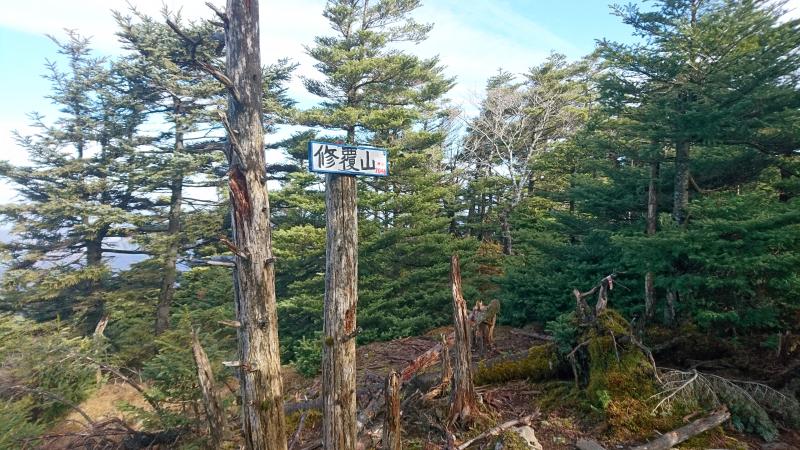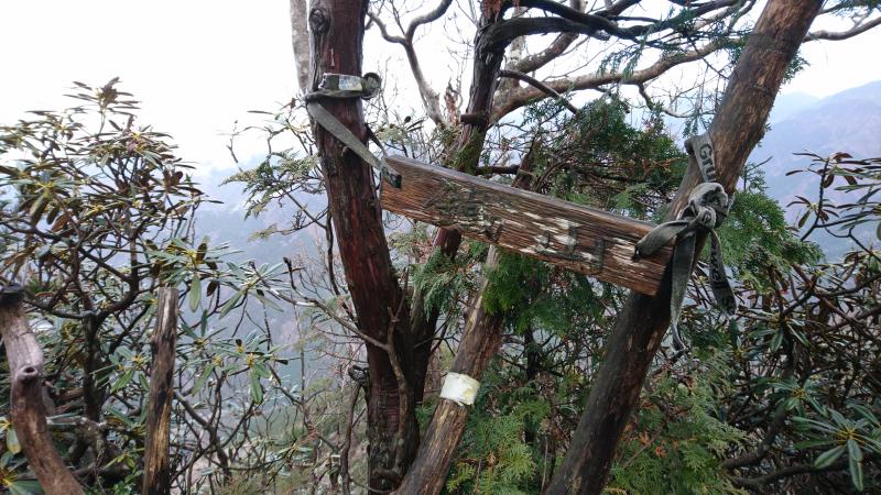荷物を小屋に一旦デポし、今日最後の山頂の行者還岳を目指します。梯子は滑りやすく道も荒れているため注意しましょう。ここの山頂も展望はほぼありません。