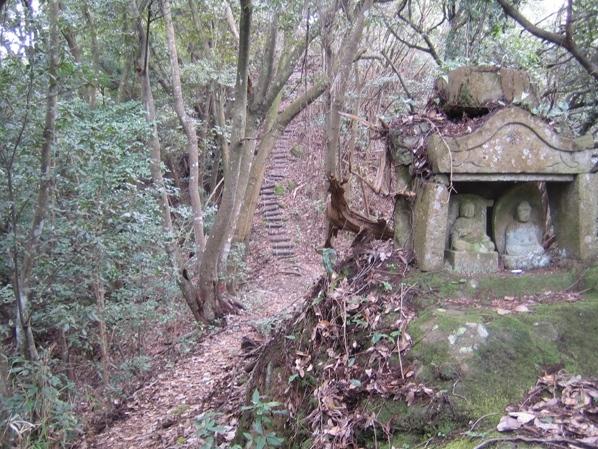 - 登山道の整備はしっかりされていて、非常に歩きやすいのですが、里山独特の道迷いを起こし易いコースです。登山道を外れた所に小さな祠が多数あり、そこまで道ができてしまっているので、入り込み易くなっていますので注意して下さい。危険と思われる箇所には新しいしっかりした鎖がありますので、落ち着いて登れば安心です。
