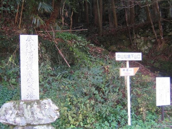 - 前田登山口>50分>無明橋>30分>高城(山頂)>30分>隠洞>20分>坊中下山口