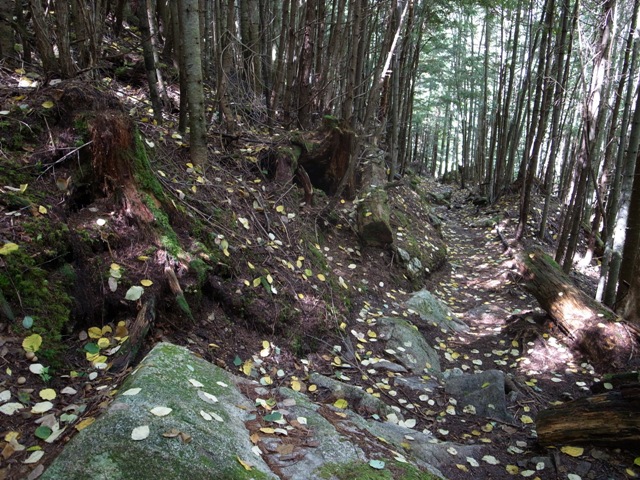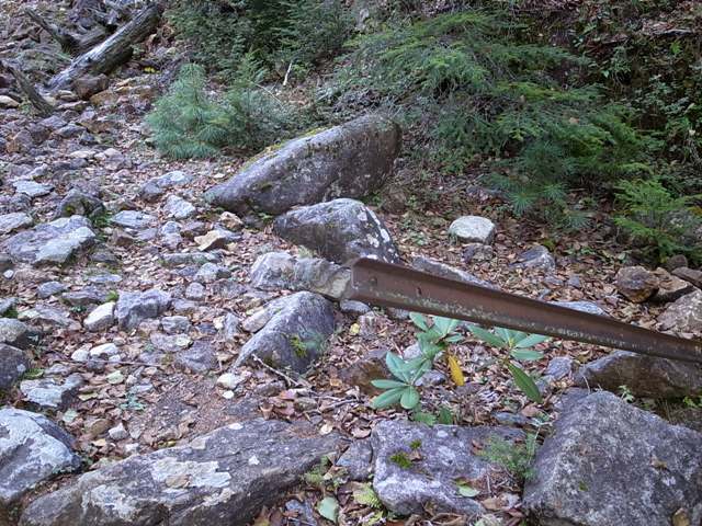林道終点までの所々斜面からの落石には注意してください。林道に落ちている花崗岩を良く見ると水晶が見つかります。