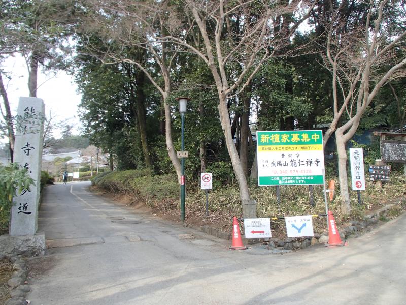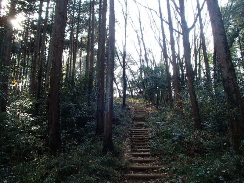 ・山道で幾人かのトレッカーとすれ違い、国道へ下ります。少し歩くと天覧山への登山口があります。ホームセンターなどがあったので、ちょっと手洗い休憩してから登り開始。