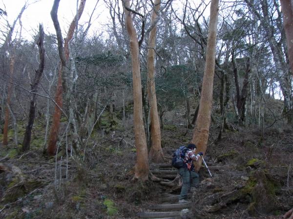 神社までの大木に感動し、6合目前後は、木の根、岩、はしごなどが続き、注意が必要でした。