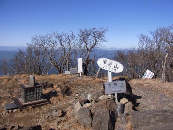 - 林道終点駐車場<15分>市房神社<60分>6合目<90分>山頂<5分>心見の橋<5分>山頂<150分>下山駐車場