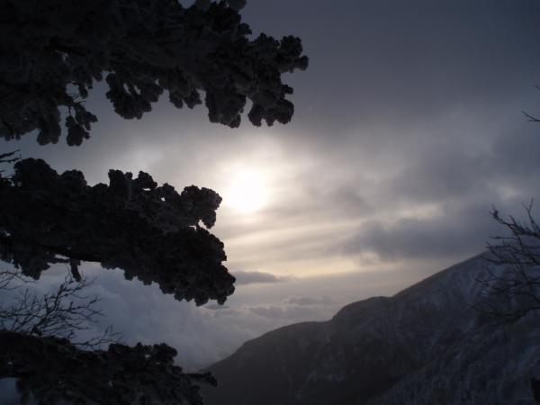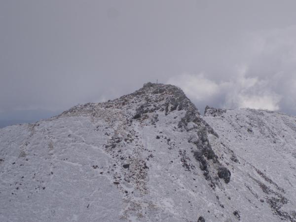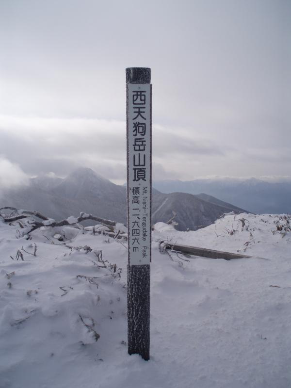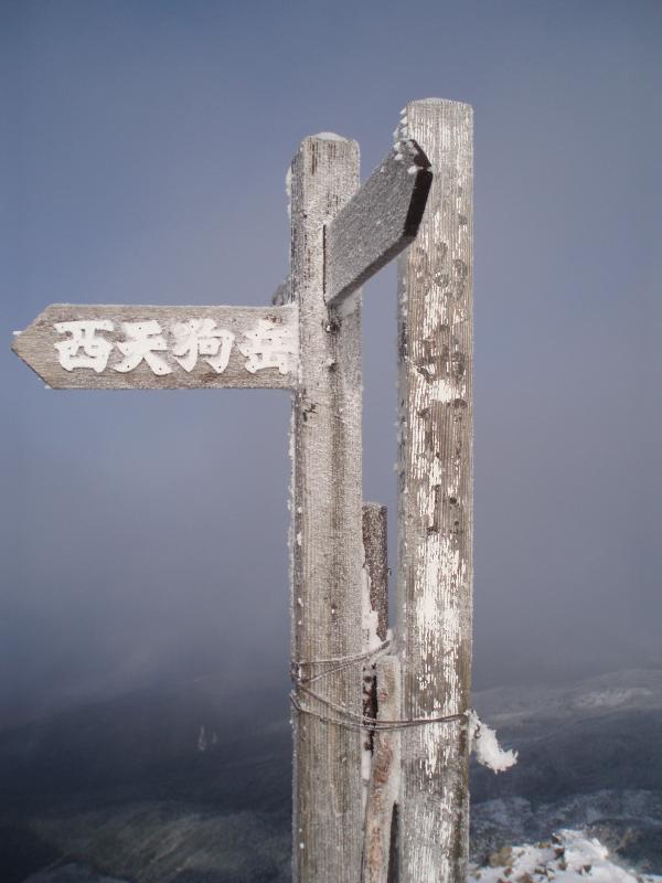 なんとか東天狗に到着!やっぱり強風で雪もチラホラ。