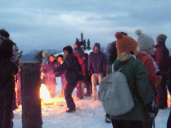 展望はよかったのですが残念ながら雲がでており、日の出を拝むことがてきませんでしたが、恒例の