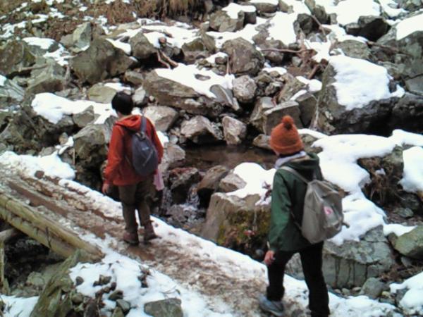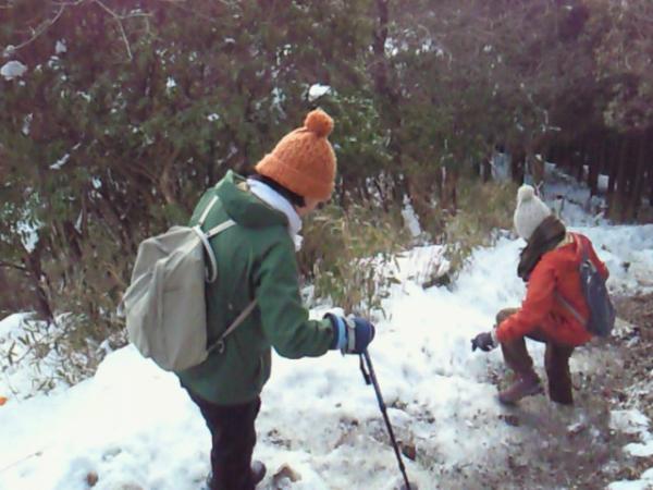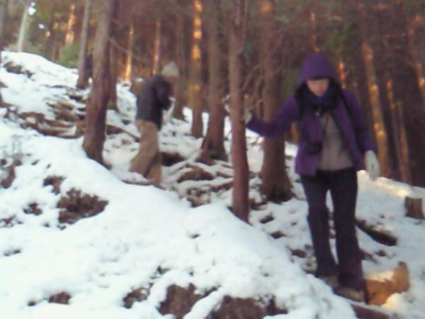 頂上では深いところで20センチほどの積雪でしたがたき火のおかげで暖まりました。