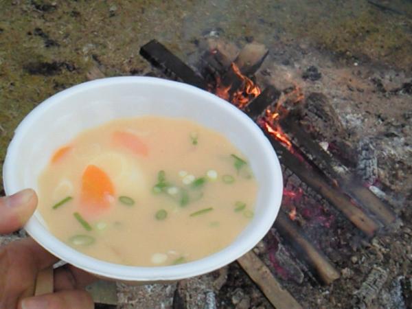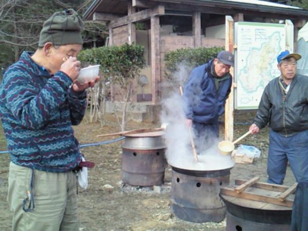 おもちを二つ持参して登山口の受付の方に渡すと、 魚のあらでだしをとったかなりおいしい雑煮を下山後にいただけます。