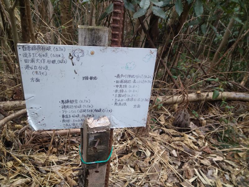 - 京急田浦駅(10分)ファミリーマート湘南港ヶ丘店(15分)変電所分岐(30分)乳頭山(30分)ファミリーマート逗子インター店(40分)鷹取山