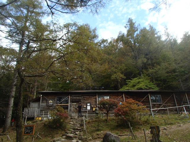 ・瑞牆山荘のある登山口からまずは富士見平小屋を目指します。豊かな樹林帯の中をのんびり登って行きます。途中で一度車道を跨ぎ、やや急な登りをクリアすると富士見平小屋に着きます。