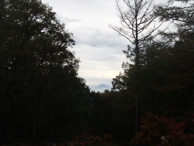 ・まだ朝早いうちですが結構登山者がいます。幸い、天気は曇りながら、展望ポイントから富士山も見えました。少しだけ休憩し、リスタートです。