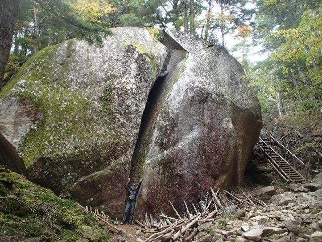 ・緩やかな道を進み小川山分岐を経て桃太郎岩へ。巨大な岩が真っ二つに割れている様は「すげぇ~!」の一言です。前も見たはずですがやはり写真を撮りまくり・・・。時間が押しているので先に進みます。