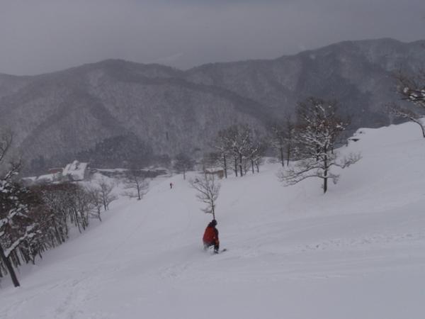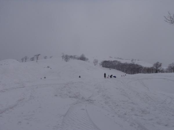 いこいの村から、登って斜面をスキー、スノーボードで滑っている方が多かったです。家族連れも下のほうでソリを楽しんでました。雪がフカフカでスノーシューを楽しむにはとてもいい山です。いこいの村には温泉があるので、入っていくとあたたまります。
