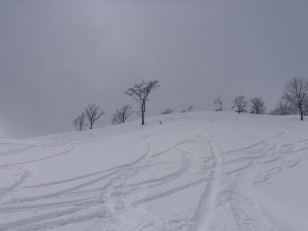 - 雪はいいコンディションに積もってます。冬はスノーボード、スキーで山頂から滑る方が多い山です。雪がふかふかでスノーシューで楽しめました。