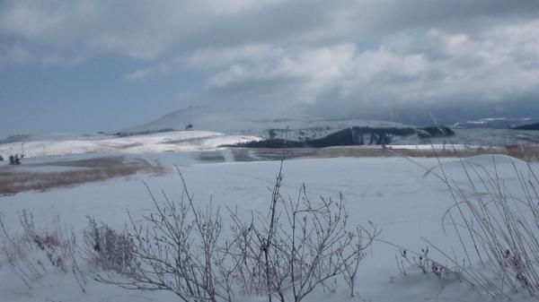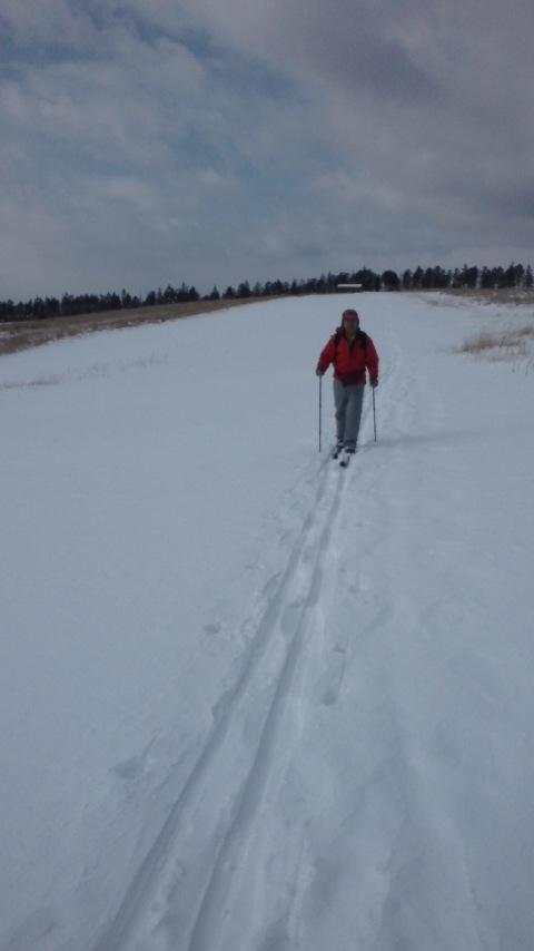 友人は登山靴で履くことが出来るHAGANのステップソールの板を履き、私はエッジ付きのクロスカントリー板でのんびりと歩いてきました。広々とした雪原の中を歩くのは気持ちよいものです。