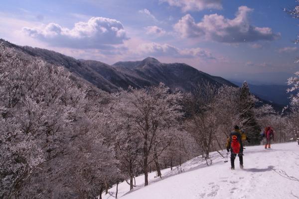 桧塚奥峰へ向かいます。ですが、天候はいまいち、道もわかりにくく途中で断念。