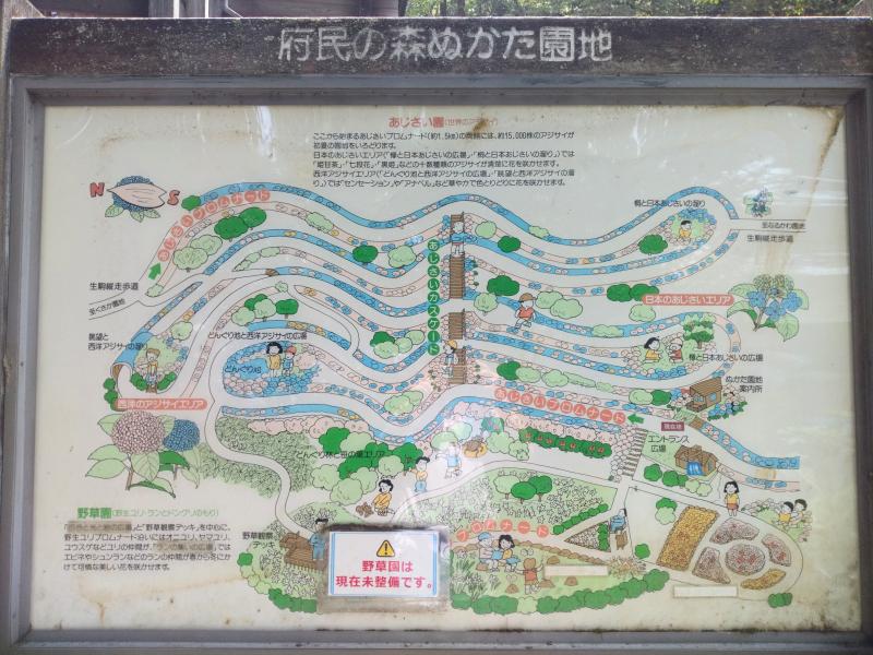 - 芝生の駐車場(30分)額田山展望台(60分)あじさい園周遊30分(50分)額田山展望台(15分)芝生の駐車場 【コース合計 3時間5分】